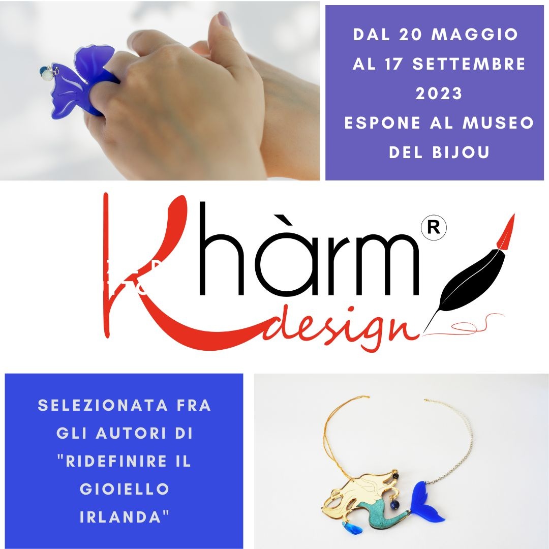 Fino al 17 settembre, la nostra vetrina espositiva è dedicata al marchio Khàrm Design, risultato vincitore del premio Museo del Bijou all'interno del contest Ridefinire il gioiello - Irlanda. Sarà possibile ammirare pezzi unici e monili dalle più iconiche collezioni della designer e orafa Carmela Barbato.