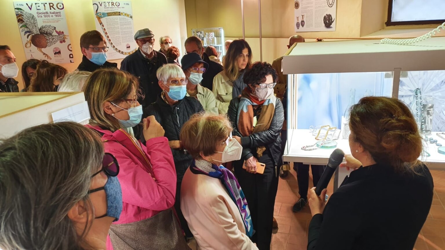 Non poteva essere diversamente: l'allestimento della mostra "Vetro. Gioielli italiani fra '800 e '900" è piaciuto a tutti. Tanti i presenti al momento inaugurale, sabato 23 aprile alle 15.30: molti i casalaschi, da sempre legati al "loro" museo, ma moltissime anche le persone arrivate da Milano, Como, Pavia, Padova..., a significare che una proposta culturale di questo calibro sa attirare veramente l'attenzione di un pubblico vasto. Dopo il saluto iniziale del conservatore Letizia Frigerio, hanno preso la parola Bianca Cappello per illustrare brevemente il progetto, Maria Grazia Diani, presidente onorario del comitato italiano AIHV (Association International pour l'Histoire du Verre) per ringraziare di questa iniziativa che ulteriormente sottolinea l'importanza e la versatilità del vetro, nell'anno che l'ONU ha dedicato a questo materiale, Augusto Panini il co-curatore della mostra, fra i massimi esperti di perle veneziane, e l'assessore alla Cultura del Comune di Casalmaggiore, Marco Micolo, presente insieme al sindaco Filippo Bongiovanni. Prima che le previsioni meteo si concretizzassero (Giove Pluvio ci è stato benevolo...) tutto il pubblico si è spostato dal cortile del museo alla sala Zaffanella per ammirare i pezzi esposti ed ascoltare le approfondite spiegazioni di Capello, che ha ripercorso attraverso i bijoux nelle teche la storia del vetro nelle declinazioni italiane di due secoli di arte e artigianato d'eccellenza. Una riuscitissima inaugurazione, all'insegna della bellezza.
