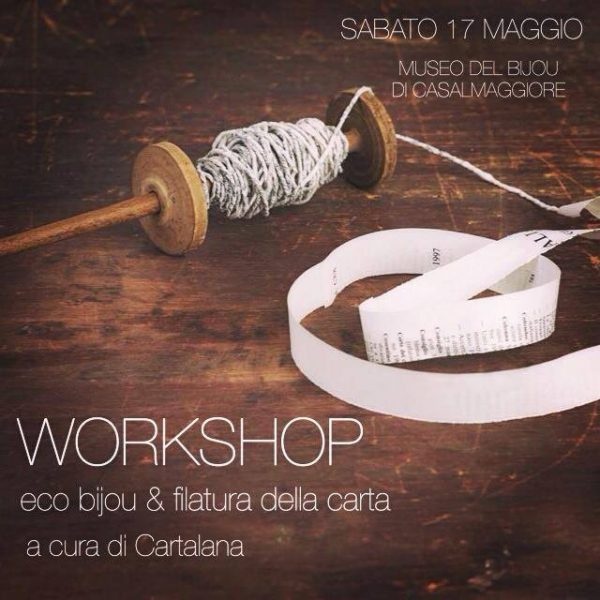 Sabato 17 maggio 2014, dalle 10,00 alle 12,00 e dalle 14,00 alle 17,00, si terrà il terzo workshop della stagione, come lezione aggiuntiva del Corso di Creazione di Bijoux. Protagonista al Museo sarà Marcella Stilo, del brand Cartalana: con lei impareremo a filare la carta per realizzarne ecologici e bellissimi bijoux. Costo € 35,00 comprensivi di fuso, dispensa e materiali. Info e iscrizioni 0375 284423.